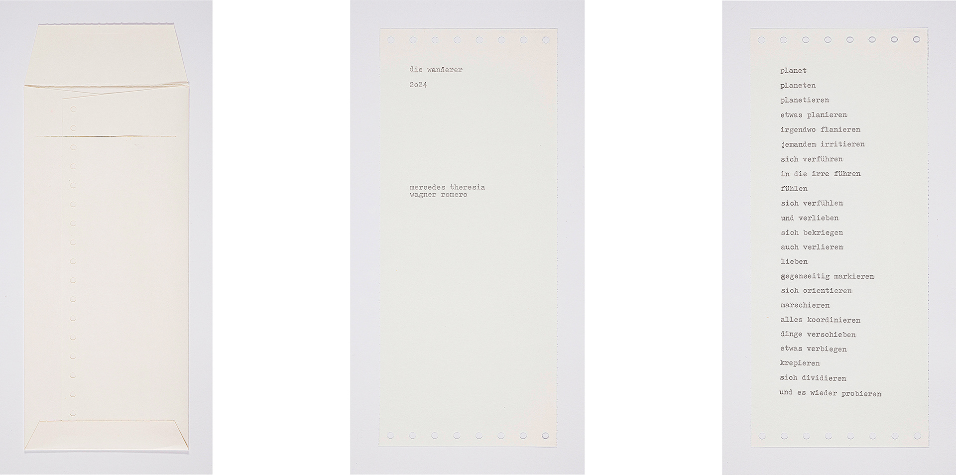 Die Wanderer (2024), Typewriter on fax paper, 12 × 24 cm / 11 × 22cm