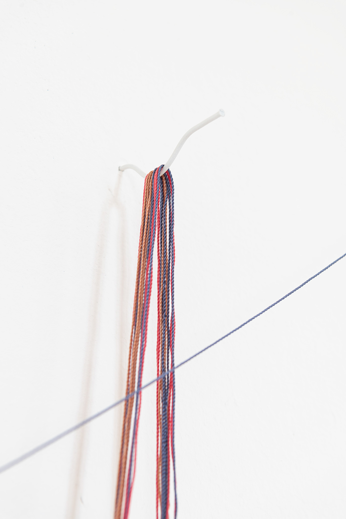 yarns, artist's hair, steel, handmade steel nails